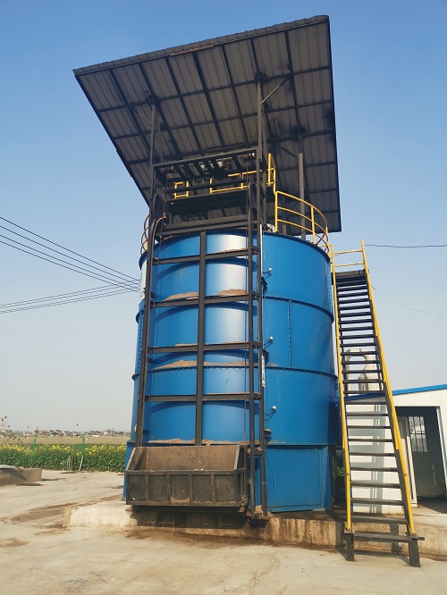 智能型機(jī)肥發(fā)酵罐是一種集畜禽糞便原料收集、存貯及發(fā)酵功能為一體的好氧堆肥發(fā)酵設(shè)備,適用于對(duì)環(huán)境要求較高的畜禽養(yǎng)殖場(chǎng)、園林廢棄物處理廠、廚余垃圾處理廠、農(nóng)業(yè)污泥處理廠、豆粕、木薯渣及米糠等好氧發(fā)酵飼料加工廠等對(duì)畜禽糞便、廚余垃圾、生活污泥等進(jìn)行高溫好氧發(fā)酵。結(jié)構(gòu)緊湊,占地面積小,無需建設(shè)廠房,無臭味,自動(dòng)化程度高,節(jié)能環(huán)保。發(fā)酵筒倉(cāng)主要由支撐臺(tái)架、筒倉(cāng)主體、頂部擋板、保溫層、溫控系統(tǒng)、高強(qiáng)度連接件等組成。該型號(hào)發(fā)酵筒倉(cāng)體積約90m3,日糞污處理能力約為12-15m3。